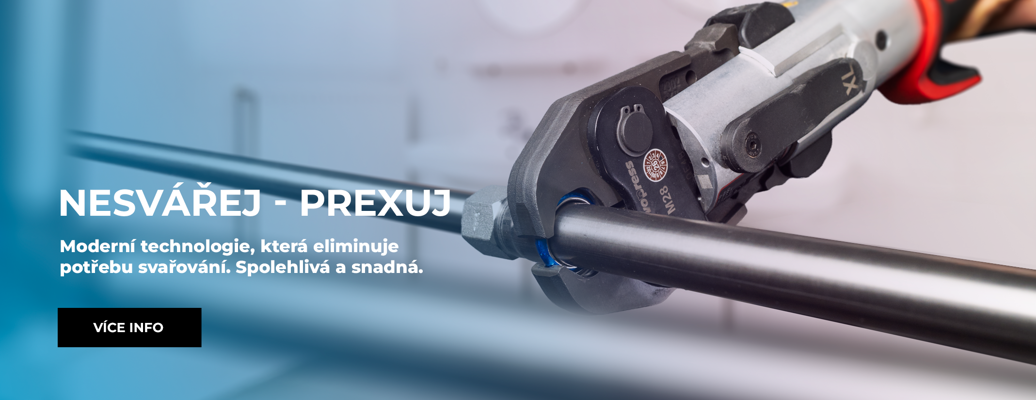 PREX je lisovaný nerezový systém profilu M, který nahrazuje svařování rychlou a standardizovanou montáží. Místo svářečáku používáš postup řez – odjehlení – kalibr – ryska – zalisování – zkouška. Výsledkem jsou čisté a spolehlivé spoje, které se dají dělat i v interiéru bez jisker a zdržování.
